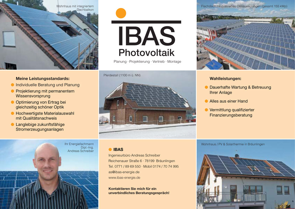 Andreas Schreiber | Reichenauer Straße 6 | 78199 Bräunlingen |Tel.: 0771 / 8969550 | Mobil: 0174 / 70 74 995 |as@ibas-energie.de | Datenschutz | Impressum